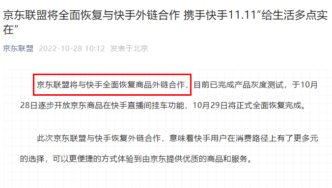 京東聯(lián)盟、淘寶聯(lián)盟將全面恢復(fù)與快手外鏈合作