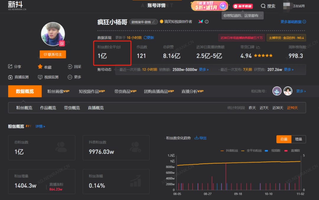 抖音瘋狂小楊哥,成為全網(wǎng)首個(gè)粉絲破億的達(dá)人