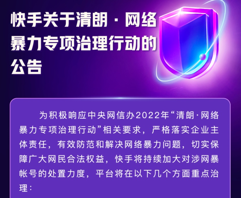 快手將持續(xù)加大對(duì)涉網(wǎng)暴帳號(hào)處置力度