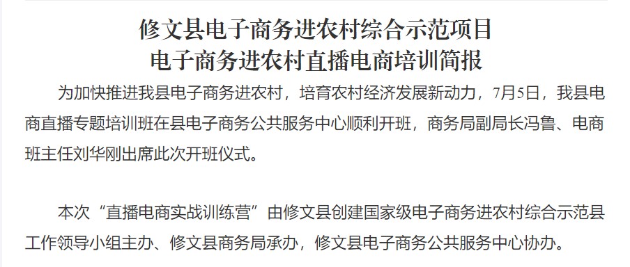 修文縣電子商務(wù)進(jìn)農(nóng)村直播電商培訓(xùn) (第一期)通知