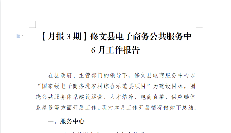 【月報3期】修文縣電子商務(wù)公共服務(wù)中心6月工作報告