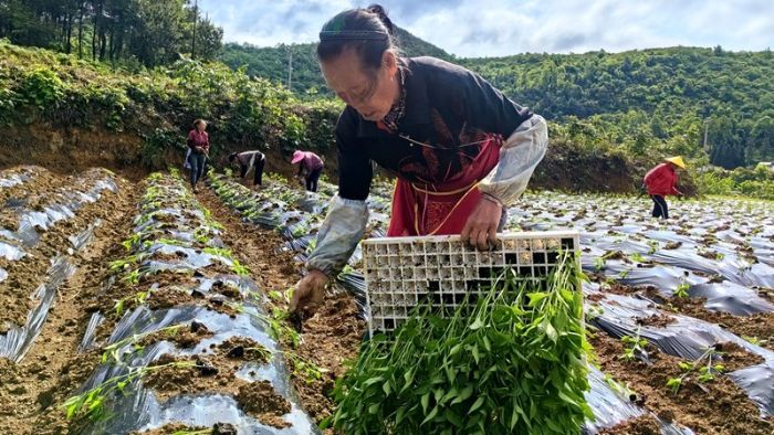 眼下,正是辣椒移栽的時節(jié)。在修文縣扎佐街道大興村田間地頭,10余名工人熟練有序地進(jìn)行辣椒苗移栽作業(yè),現(xiàn)場一派繁忙景象。他們手持木棍,熟練地撕開地膜,將碧綠的小苗種下,最后從壟邊捧一捧土,蓋在辣椒苗的根部進(jìn)行加固,不一會兒,綠油油的辣椒苗就從育苗大棚搬進(jìn)了…